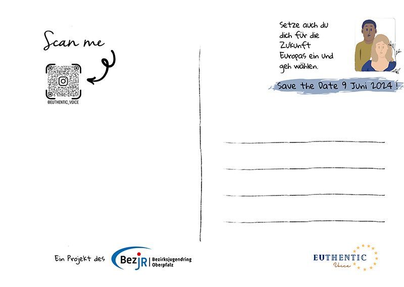 Mit der Kampagne rund um die Europawahl 2024 möchte der Bezirksjugendring der Oberpfalz junge Wähler:innen, vor allem Erstwähler:innen ab 16 Jahren, ansprechen und sie motivieren, sich an der Wahl zu beteiligen.